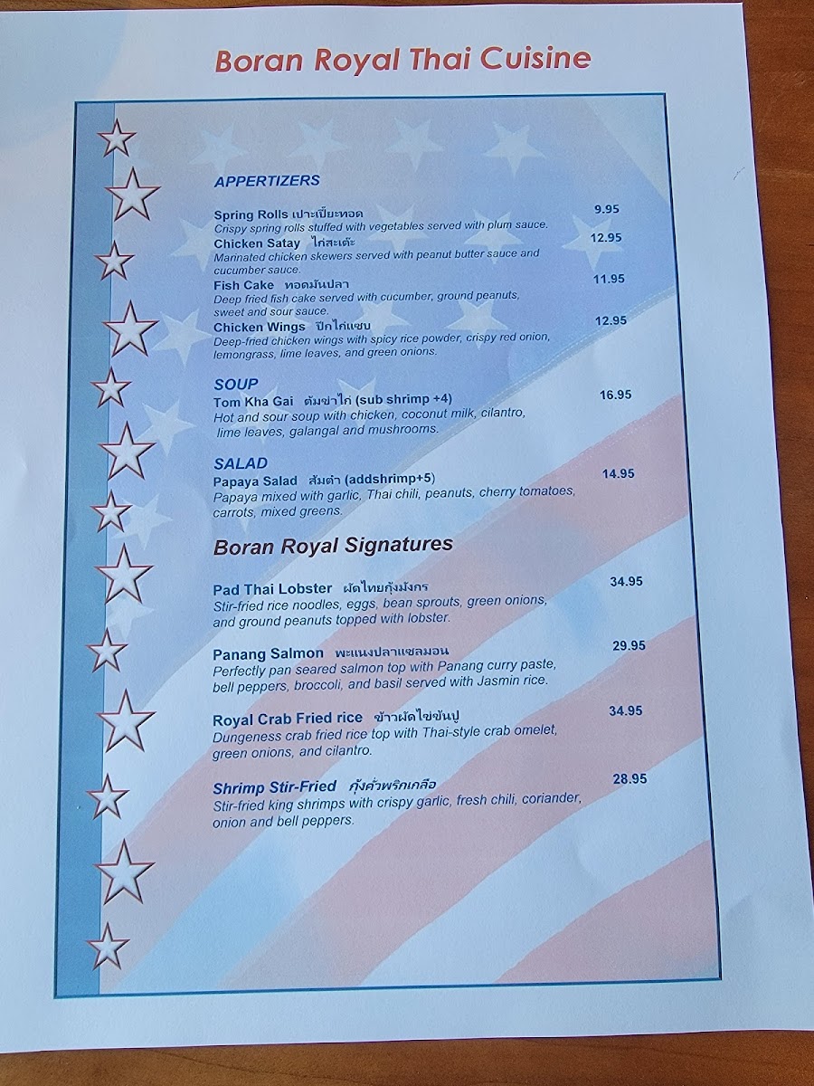 Welcome to Boran Royal Thai Cuisine, where tradition meets culinary excellence. Nestled in Ruston, WA, this gem offers an exquisite menu that showcases the vibrant flavors of authentic Thai cuisine. Renowned for their Pad Thai, many guests rave about the depth of flavor and freshness that sets this dish apart. The menu doesn’t stop there; indulge in expertly prepared calamari and a variety of gluten-free options that cater to diverse dietary needs.